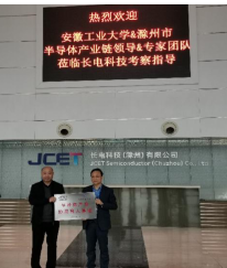 下午,学院一行先后参观了长电科技(滁州)有限公司、立讯精密工业(滁州)有限公司、滁州惠科光电科技有限公司,并且和各企业的负责人进行交流座谈,向企业介绍学院专业设置和人才培养特点以及科研方向和团队,听取企业在专业人才和科技攻关方面的需求。学院在长电科技(滁州)有限公司举行了“半导体产业协同育人基地”授牌仪式。