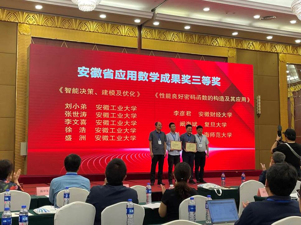 智慧决策与优化团队(刘小弟教授、张世涛副教授、李文喜副教授、徐浩副教授、盛洲副教授)申报的项目《智能决策、建模及优化》荣获安徽省应用数学成果奖三等奖。