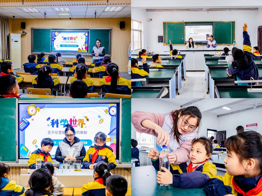 “数理行知”科普志愿队联合马鞍山市少年宫,走进当涂县大陇中心学校,开展以“浮沉子的魔法实验室”和“会跳舞的豆子”为主题的沉浸式科普活动。活动融合趣味实验演示、动手实践与互动讲解,引导同学们在亲身参与中探索科学奥秘,直观感受科学世界的无限魅力。