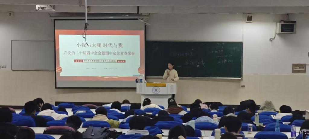 为深入学习贯彻党的二十届四中全会精神,切实把青年学子思想和行动统一到全会部署上来,引导大家在“十五五”规划开局关键期锚定青春航向、勇担时代使命,12月29日下午,第六届辅导员宣讲团成员周文潇走进微密圈